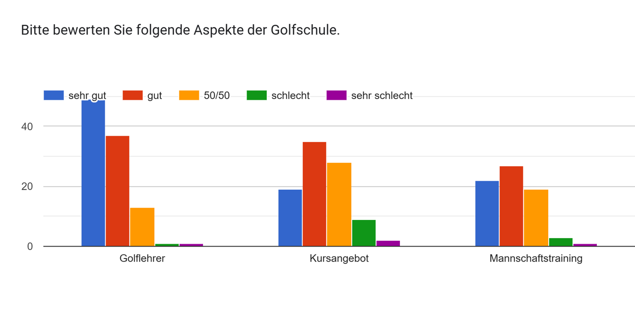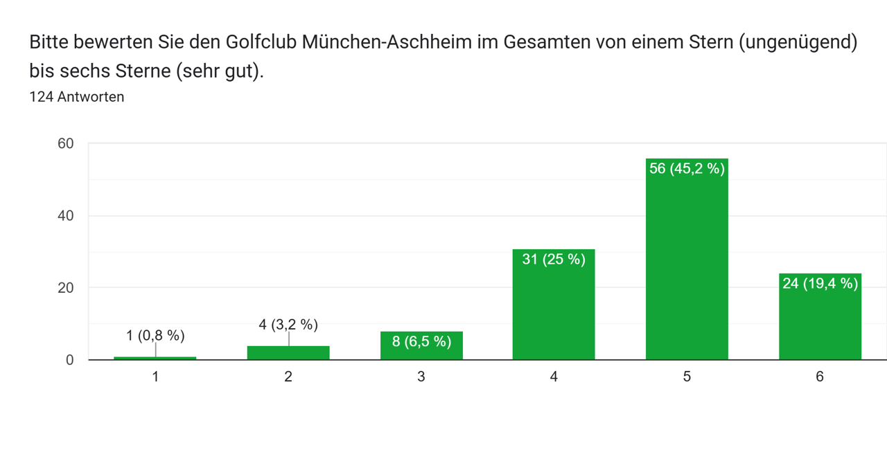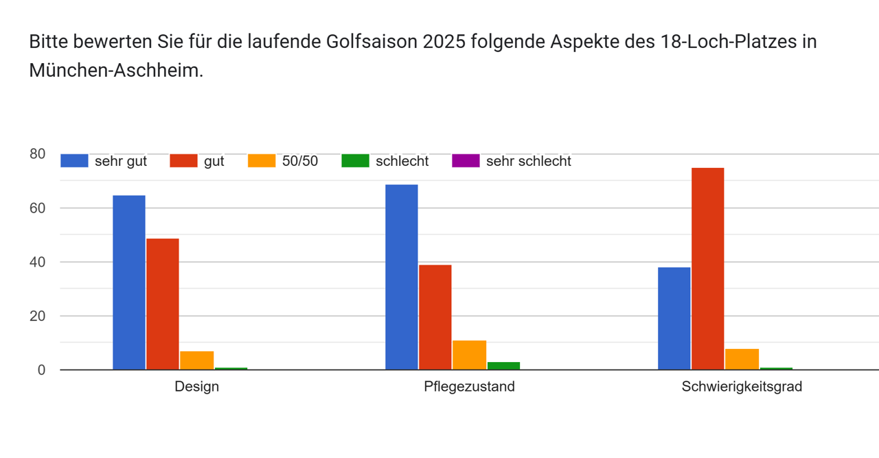 Im November dieses Jahres haben wir eine Umfrage gestartet, um die Einschätzung der bestehenden Mitglieder, aber auch Mitarbeiter hinsichtlich ihres Golfplatzes besser zu verstehen. Bis zum 15. Dezember nahmen 125 Personen daran teil, wofür wir uns herzlich bedanken. Uns ist einmal mehr klargeworden, welch großes Interesse an einer gemeinsamen Entwicklung der 18-Loch-Anlage besteht.