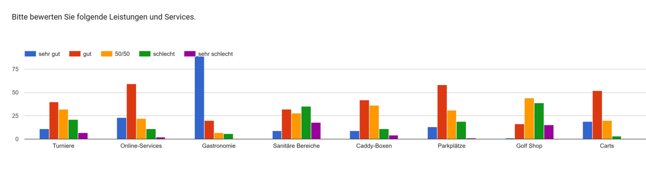 Der Widerspruch zwischen den nicht sonderlich geliebten 8-Minuten-Intervallen und dem Wunsch nach mehr beziehungsweise kurzfristig buchbaren Startzeiten sticht sofort hervor. Anders ausgedrückt: Der Golfplatz ist zu bestimmten Zeiten regelmäßig voll. Das Gleiche gilt nach Einschätzung vieler Befragten für die Übungsanlagen. Hier besteht dringender Handlungsbedarf, was aber schnell umzusetzen sein dürfte.